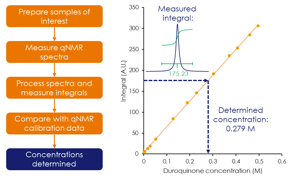 Figure 2: Determining the concentration of duroquinone using an external standard by benchtop qNMR.