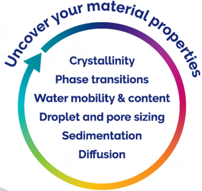 Unlike other techniques used to obtain the same sample properties, TD-NMR is non-invasive and non-destructive, often requires minimal sample preparation, and characterises both transparent and opaque samples. Another major advantage of TD-NMR is that it does not require hazardous chemicals and can be used on a laboratory benchtop, moveable workstation, or near line in manufacturing.